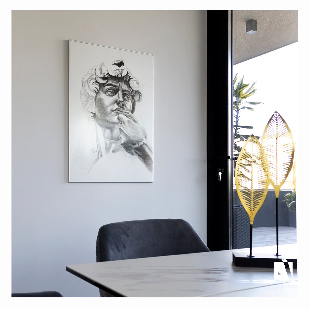 DETALII - Dimensiune la cerere (dimensiunea modelului: 70x100 cm) Suport - Hârtie specială pentru cărbune Material: Cărbune Rama nu este inclusă