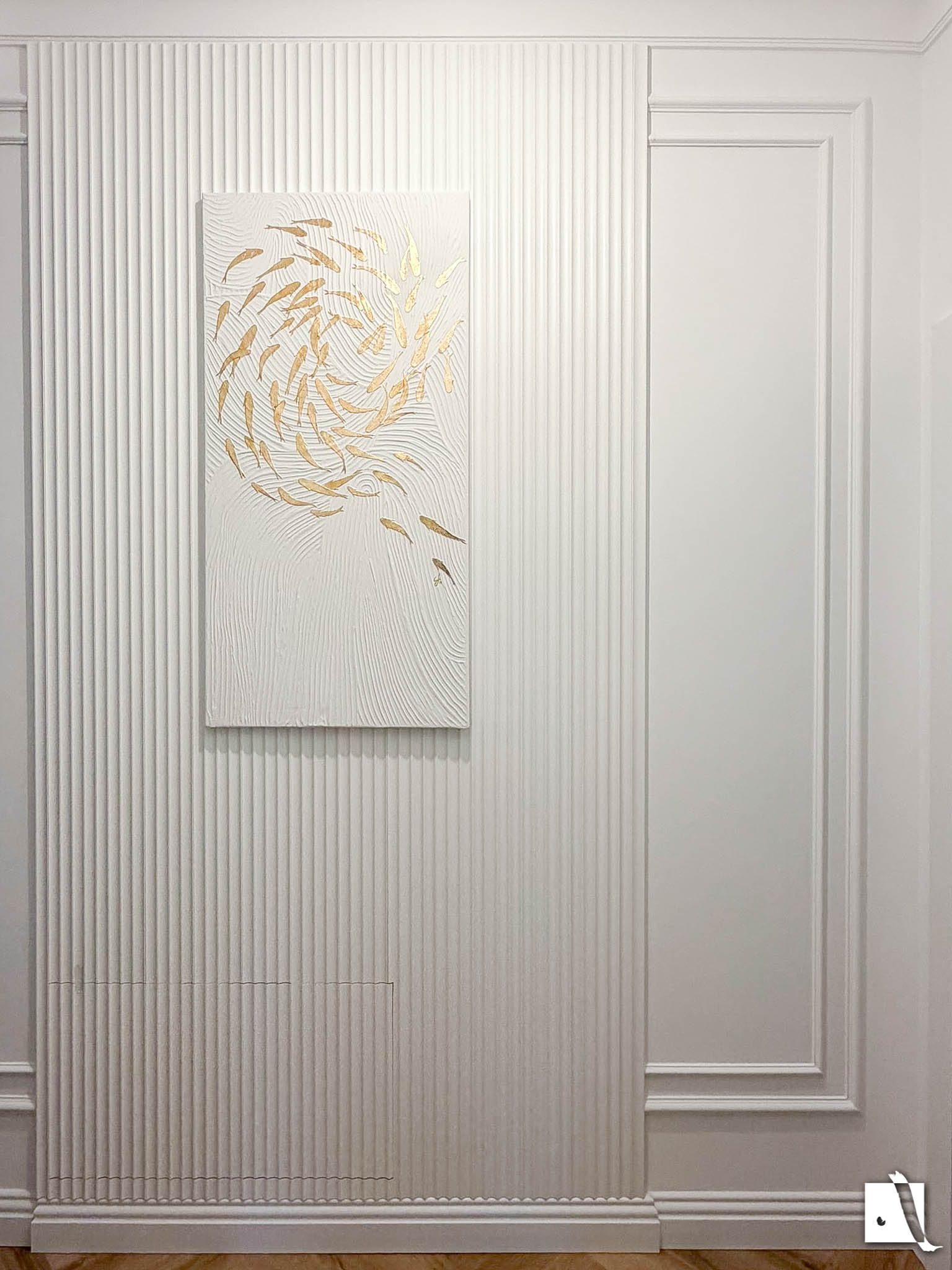Material - vopsea acrilică, pastă de modelaj, foiță de aur (imitație)